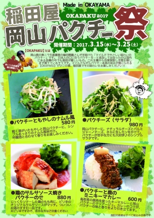和食居酒屋の「稲田屋」では、3月15日より、岡山産パクチーをふんだんに使った日本酒と合うパクチーメニューを提供する。 全国でもトップクラスの生産量を誇る、岡山県の「岡山パクチー【OKAPAKU】」。優