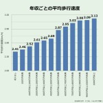 ドコモ・ヘルスケアは、「ムーヴバンド(R)3」の利用者へのアンケート調査および歩行に関するからだデータを用い、年収と歩行速度の関係を調査した。「ムーヴバンド3」は腕に着けるだけで、歩数・睡眠(時間/状