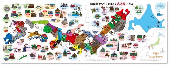 JTBパブリッシングは、ミリオンセラー作家・あきやまかぜさぶろうさんが考案した日本地図暗記法「あきやまメソッド」をパズルにした、「1日10分でちずをおぼえる大きなパズル」を、9月23日に発売する。 「