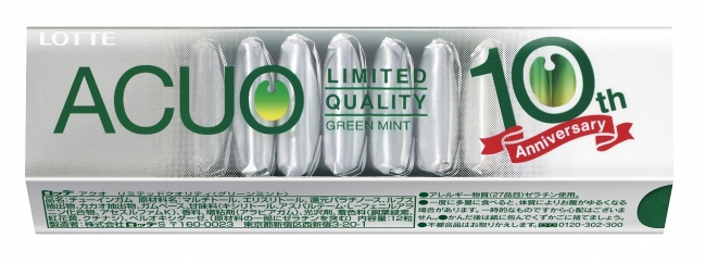 ロッテは、「ACUO」(アクオ)の発売10周年を記念して、9月20日に記念商品「ACUOリミテッドクオリティ(グリーンミント)」を発売。「本気で感謝キャンペーン」も実施する。 「ACUO」は、「息をデ