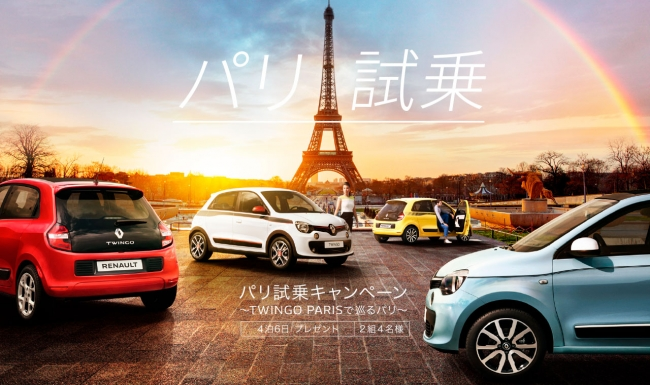 ルノー・ジャポンは、7月13日に発表した「新型ルノー トゥインゴ」のコミュニケーションテーマ「TWINGO PARIS」の世界観を体感できる「パリ試乗キャンペーン」を実施している。抽選で2組4名を、4