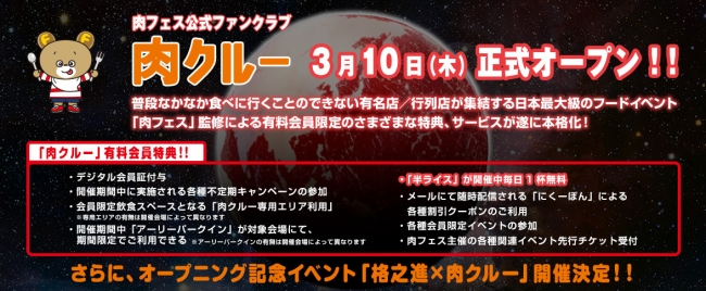 SKIYAKIは、3月10日に、国内外の肉料理を集めた日本最大級の肉イベント肉フェスの年会費制ファンクラブ「肉クルー」をオープンした。 日本の誇る「食」を世界に向けて発信していくイベントとして始まった