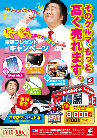 ラビット・カーネットワークが運営する買取・販売サービスの「ラビット」では、1月10日~3月29日まで、「そのクルマ、もっと高く売れます!」キャンペーンを実施する。 「そのクルマ、もっと高く売れます!」
