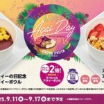 コロワイドグループのかっぱ寿司は、9月11日~17日の期間、フルッタフルッタのアサイーを使用した「アサイーの日記念特別メニュー」を、かっぱ寿司全店にて販売する。 9月16日の「アサイーの日」を記念して