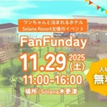 ソラナリゾートは、同社が運営するトレーラーハウス型ホテル「Solana木更津」にてワンちゃんと一緒に楽しめる交流イベント「Fan Fun Day 2025」を11月29日に開催する。 ソラナリゾートは
